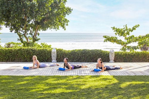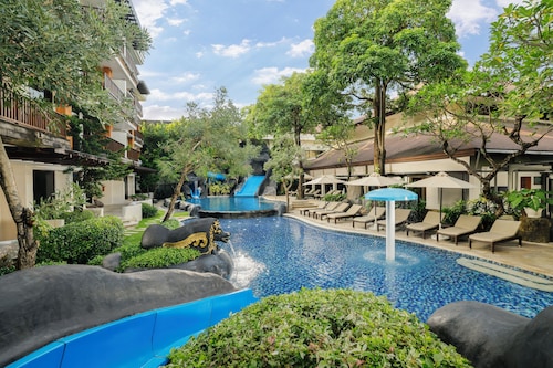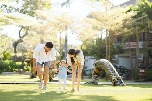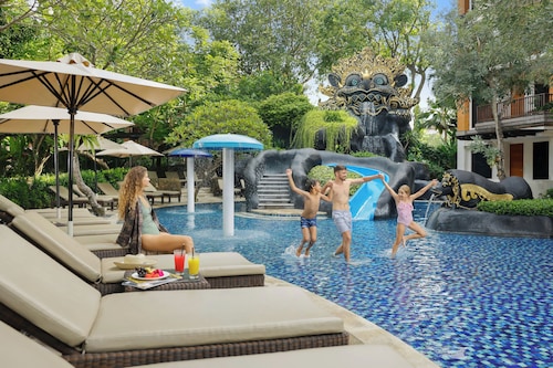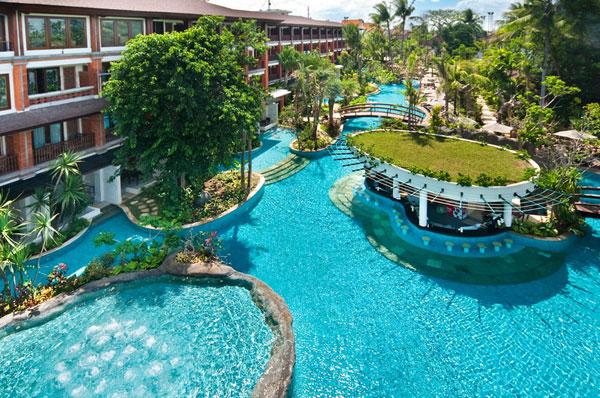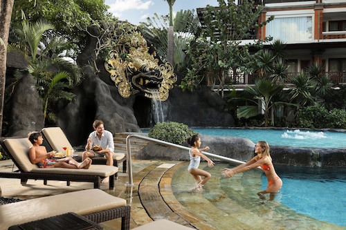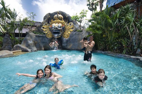大きなメインプールと子供用プール、さらにラグーンプールまであり、お子様が存分楽しむことができます。ビーチサイドの道を挟んで、目の前は有名なクタビーチ。この辺りは波が高めで、泳ぐのには不向きですが、海辺で遊んだり夕日を楽しむことが出来ます。キッズクラブがあり、日替わりのアクティビティやキッズパーティーまで用意。子供が飽きることがないようたくさんのプログラムがあります。コンピューターゲームやWii等が揃ったゲームセンターまであり、少し大きいお子様にとても人気です。日本人スタッフが常駐していますし、日本食レストランもあるので、安心して滞在できます。毎日テーマディナーを行っており、お子様の好きなピザ、パスタが豊富なイタリアン・ディナーや舞踊を見ながらのインドネシアディナー、日本食などが食べ放題となり、ご家族の思い出となることでしょう。ご家族の方には、ホテル棟の1階に位置しているプレミアルームが、通常よりも大き目のベッドがツインで入っているのでお勧めです。又はリクエストで、各お部屋をコネクティングとしても使えます。*キッズクラブは、9:00~20:30。2歳~9歳*ゲームセンター 10歳~17歳*ベビーシッター 有