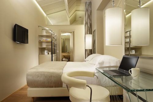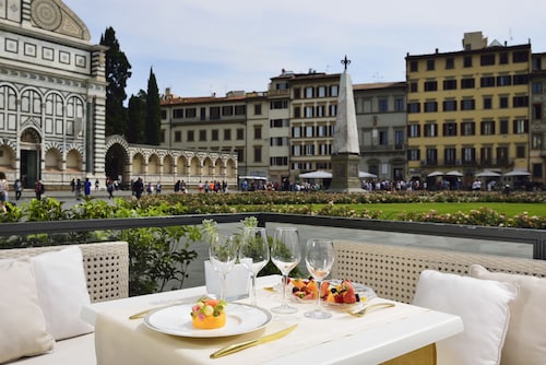 SMN駅から徒歩すぐ、サンタ・マリア・ノヴェッラ教会の隣にあるホテルです。宿泊者なら誰でも利用可能な屋上にのプールからは、フィレンツェ旧市街とドゥオーモを眺めることができ、ここでゆっくりとした時間を過ごすのもお勧めです。★アクセスSMN駅から:西側出口から出ると右手に地下道へのエスカレーターがあるのでそこに入り、そのまままっすぐ通路を進みます。突き当りの階段を上がると(ここにエスカレーターが無いのは少々ネックですが)、サンタ・マリア・ノヴェッラ教会の横に出ますので、そのまま広場へ進むとすぐ右手。★ホテルの設備概要とルームカテゴリー全102室で、比較的ファミリー向けの部屋タイプが多いのが特徴。ファミリー向けスイートだけで3タイプあり、お子様には秘密のプレゼントも用意されています。クラシックルーム/スーペリアルーム(Classic Room/Superior Room)通常タイプの客室としてはこの2グレードで、クラシックは約18㎡、スーペリアは約26㎡確保されています。いずれもシャワーオンリーの部屋とバスタブ付きの部屋があるので、バスタブ希望の場合は事前にリクエストを。スーペリアは上層階の眺めの良い部屋となり