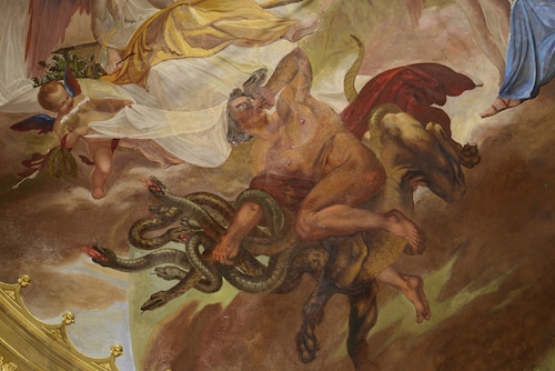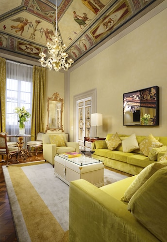 最上級グレードのスイートで、18世紀に描かれたフレスコ画(もちろんオリジナル)が天井に残されています。