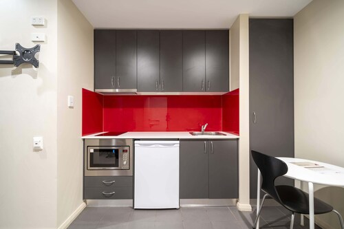 マーズフィールドに位置するこのアパートスタイルホテルは、マッコーリー大学およびレーン コーブ国立公園から徒歩 15 分圏内です。マッコーリー ショッピング センターまで 2 km です。マッコーリー大学駅まで徒歩 23 分、エッピング駅まで徒歩 28 分です。 このアパートスタイルホテルには、ランドリー設備、図書室、および庭園があります。共用エリアでの WiFi (無料)および セルフパーキング (無料)もご利用いただけます。その他に、敷地内にはテレビ (共用エリア)、多言語サービス、および自動販売機があります。 各客室では、床暖房のほかに、WiFi (無料)、キッチンもご利用いただけます。デジタル放送付きスマートテレビでエンターテインメントをお楽しみいただけるほか、電子レンジ、コンロもご利用いただけます。客室清掃は 1 度の滞在につき 1 回のみ行われます。