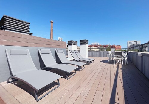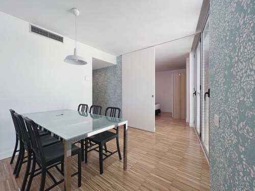 サン マルチに位置するこのアパートメントは、アヴィングダ・ディアゴナルおよびバルセロナ インターナショナル コンベンション センターから徒歩 15 分圏内です。バルセロネータ ビーチおよびサグラダ ファミリア (教会)も 5 km 圏内です。地下鉄 セルバ デ マル駅まで徒歩 7 分、フルビア トラム停留所まで徒歩 7 分です。 この禁煙のアパートメントには、ルーフトップテラス、エクスプレス チェックアウト、および共用エリアでの WiFi (無料)があります。 アパートメントでは、冷蔵庫とオーブン、コンロ、電子レンジが備わったキッチンをご利用いただけます。エンターテインメント設備として、デジタル放送付きのテレビがあるほか、便利な洗濯機、ダイニング スペースもご利用いただけます。