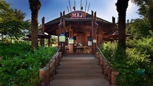 ディズニー直営デラックスクラス(デラックス/モデレート/バリューの3段階のうち、最上級)アフリカの雄大なサバンナがテーマの高級ホテル。なんと言っても見所は、キリンやシマウマなどの動物達が自由に歩き回るサバンナ風のお庭です!ホテル入り口の向かい側は一面ガラス張りになっていて、そこから動物たちを眺めることができます。外に出て、更に近くから観察することもできますよ!また、ロビーは天井が高くとても開放感があります。アフリカンミュージックが流れ、アフリカン・テイストの調度品や内装に囲まれてた館内ではゆっくり流れる時間を楽しむことができます。各パーク、ディズニースプリングスまではシャトルバスを利用できます。