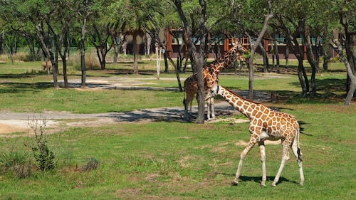 サバンナ側に泊まると部屋からキリンやシマウマが見られます。1階のイートインで滞在中ソフトドリンク飲み放題サービスがあり、ハンバーガーや菓子パンなどを持ち帰りお部屋で食べることもでき、観光で朝食を取る時間を節約したい人に便利。またホテルのダイニング、ジーコは大変美味しく、滞在中一度は訪れてみてください。