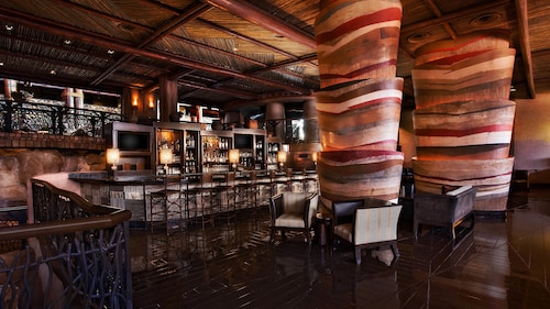 ホテル内には、アフリカの雰囲気が漂う3つのレストランがあります。1つはクイックサービス・レストランの「マーラ」。2つ目はアフリカ料理をビュッフェスタイルで楽しめる「ボーマ」(朝食・夕食)。そして3つ目は、本格的なステーキやシーフードを本格的なアフリカテイストで味わえる高級レストランの「ジーコ」(夕食)。そして外には木々に囲まれた広いプール、スライダー、ジェットバスなどがあり、大自然の中で遊んだり、くつろいだりできますよ!