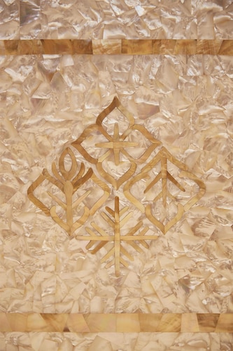 モザイクガラスが施されたロビー天井は四季をモチーフにしており、華やかさと重厚さを演出しています。