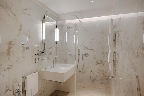 ほぼ全室バスタブ付き、大理石が豪華なバスルーム