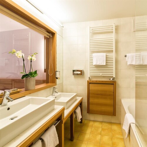 キエーネスにあるこのホテルは、ドロミテから 0.1 km、アドベンチャー パーク クロンアクションから 2.6 km です。マンシオ セバトゥム ミュージアムおよびクローンプラッツ ホリデイ リージョンも 10 km 圏内です。カステルダルネ駅まで徒歩わずか 2 分です。 レストラン、屋内プール、および屋外プールがあるホテルです。その他の設備には、バー / ラウンジ、スチームサウナ、およびセーフティボックス (フロントデスク)があります。 このホテルには、94 室の客室があります。