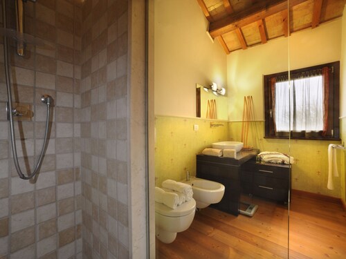 モンテファーノに位置するこのヴィラは、ジュゼッペ ペルシアーニ シアター、Chiesa Sant'Agostino、オージモ洞窟から 20 km 圏内です。クペルチノの聖ヨゼフ大聖堂およびCampocavallo Cycle Pathも 20 km 圏内です。 屋外プール、庭園、およびバーベキューグリルがある禁煙のヴィラです。共用エリアでの WiFi (無料)および セルフパーキング (無料)もご利用いただけます。 ヴィラには、ベッドルーム 4 室、DVD プレーヤー、エスプレッソ マシンが備わっています。豪華な設備とサービスには、プライベートプール、暖炉などがあるほか、便利な4 室のバスルーム、洗濯機 / 乾燥機もご利用いただけます。