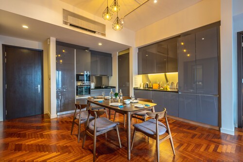 クアラルンプール シティ センターに位置するこのアパートメントは、ペトロサインス サイエンス ディスカバリー センター、ペトロナス ツイン タワー、スリア KLCC ショッピング センターから徒歩 15 分圏内です。KLCC パークおよびパビリオン クアラルンプールも 3 km 圏内です。地下鉄 KLCC 駅まで徒歩 10 分、地下鉄アンパンパーク駅まで徒歩 12 分です。 このアパートメントには、屋内プール、屋外プール、およびフィットネスセンターがあります。共用エリアでの WiFi (無料)および セルフパーキング (無料)もご利用いただけます。その他の設備には、子供用プール、エクスプレス チェックイン、およびエクスプレス チェックアウトがあります。 各アパートメントでは、深めの浴槽のほかに、WiFi (無料)、簡易キッチンもご利用いただけます。エンターテインメント設備として、ケーブル放送付きの薄型テレビがあるほか、便利な洗濯機 / 乾燥機、冷蔵庫もご利用いただけます。客室清掃は行われません。
