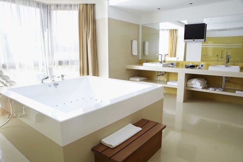 メデウ地区に位置するこの高級ホテルは、アルマトイのオペラ ハウス、カザフスタン国立博物館、ゼンコフ大聖堂から 2 km 圏内です。アルマトイ中央スタジアムおよびアルマトイ動物園も 5 km 圏内です。アルマリーまで徒歩わずか 14 分です。 このホテルには、フルサービス スパ、屋内プール、およびレストランがあります。共用エリアでの WiFi (無料)および セルフパーキング (無料)もご利用いただけます。その他に、敷地内にはフィットネスクラブ (スタッフ常駐)、バー / ラウンジ、およびプールサイドバーがあります。