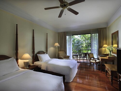 ホテル敷地内に入ると緑が溢れ、カンボジアだと思わせない優雅な空間が広がっている。西洋人や韓国人旅行客が多く、日本人宿泊客は若干少なめだが、広々としたプールやバーでゆっくり過ごせる。人気スパや、ゴルフが楽しめるのもポイント。遺跡には約7kmとアンコールワットに近い5つ星ホテル。まっすぐ行けばアンコールワットに到着と言うアンコールワット通りに立地し観光には便利。観光客がよく訪れるオールドマーケットやナイトマーケットへはトゥクトゥクを利用すれば約5分程度となる。また近くには日本人に人気のアンコールクッキーの店舗もある。シックな雰囲気でどことなくアジアンテイスト&ナチュラルテイストの客室は広々としており、清潔感あふれ、全体的に明るく快適に滞在が楽しめる。全室禁煙となるため、タバコを吸う人はベランダ付きの部屋がお薦めである。バスルームは清潔感があり、こだわりを持ったアメニティー(ロキシタン)が揃っている。もちろん、バスタブは完備。シャンプー、コンディショナー、石鹸、歯ブラシなど基本的なアメニティが完備されている。サービス面では、フレンドリーなスタッフが多く、親切で対応が丁寧。また日本人スタッフもいる。敷地からは少し