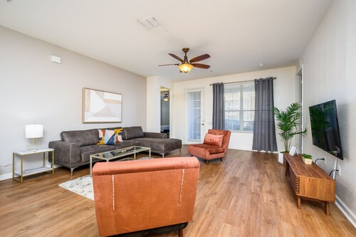 オーランドにあるこのゴルフを楽しめるコンドミニアムは、シングル クリーク ゴルフ コースから 1.4 km、オレンジカウンティ コンベンション センターおよびアクアティカから 5 km 圏内です。ICONパーク™の観覧車まで 3.8 km です。 フィットネスセンター、バーベキューグリル、およびセルフパーキング (無料)がある禁煙のコンドミニアムです。 コンドミニアムでは、2 室のバスルーム、洗濯機に加えて、WiFi (無料)、冷蔵庫もご利用いただけます。そのほか、コーヒー / ティー メーカー、シーリングファンなどの設備とサービスもご利用いただけます。