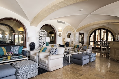 ゴゾ島南部サナット郊外にある、海と陸の美しい景色に囲まれた5つ星ホテルです。空港からは、タクシーもしくはX1バスでチルケッワのフェリーターミナルまで行き(所要時間55分/33km)、フェリーでゴゾ海峡を渡ること約25分でイムジャーハーバーに到着、そこからタクシーで16分/7kmです。ホテル建物の約150m先には、「タ・チェンチ・クリフス」の断崖があります。ホテルからサナットの中心地(スーパーあり)までは、約900m/徒歩10分。ホテルゲート前のバス停Ta Cenc(タ・チェンチ)からは、首都ヴィクトリア(約10分)へ向かうバスに乗降りすることができます。ホテル建物は、ゴゾらしさを最大に生かした伝統的なスタイルです。フロントの向かいには、ホテルのロゴにも使われている古いタワーがあります。贅沢な平屋造りの本館内部は、上品なインテリアでまとめられています。ロビーラウンジの先には、プールサイドに面したオープンカフェがあります。カフェ裏側の廊下の外に出ると、木に覆われた屋外席が素敵なレストランがあり、その先にはスパとフィットネスジム、そして、円錐型天井の室内プールと岩に囲まれた屋外プールが連結している魅力的な温水プ