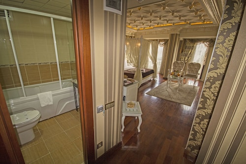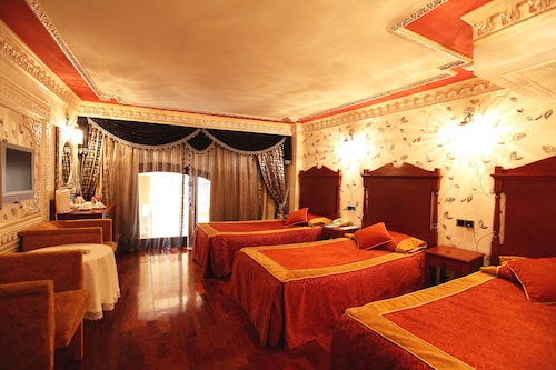スルタンアフメット駅から徒歩5分程の場所に位置するGolden Horn Sultanahmet Hotel。ブルーモスク、アヤソフィア、トプカプ宮殿、グランドバザールと観光名所が徒歩圏内にあります。スタンダードのお部屋はそれほど広くはありませんが、オスマン調で装飾されたお部屋は、まるで宮殿にいるかのようなゴージャスな雰囲気があります。下の階ではブルーモスクなどは見えませんが、ホテルの庭園やビンビルディレッキ公園が見え、明るい雰囲気を与えます。屋上のテラスレストランでは朝食ビュッフェと夜はアラカルトをサービス。テラスから見える景色はスルタンアフメットが一望でき、ブルーモスク、アヤソフィアを近くで楽しめます。朝と夜で顔を帰るイスタンブールの街並み。スルタンアフメットも夜はライトアップされた建造物がロマンチックな空間を演出します。ロビーにあるカフェは音楽を聴きながら旅の疲れを癒してくれるスペースとなっています。館内にはフィットネス、ハマム、サウナが併設しており、これらの施設で身体をゆっくり休めてリフレッシュして頂けます。世界遺産に登録された歴史地区であるスルタンアフメットでトルコの歴史を肌で感じ、贅沢な時間を