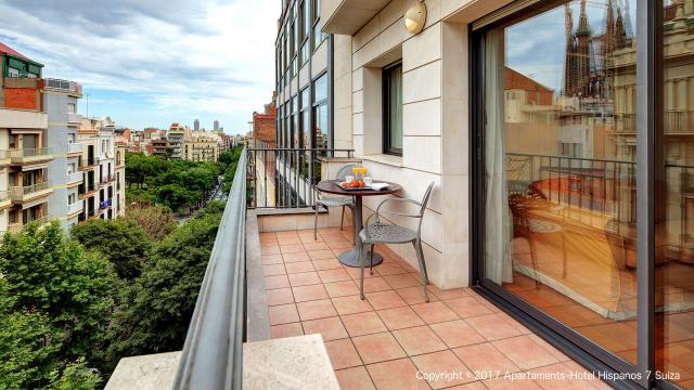 ガウディのサグラダファミリア教会から150mに位置するアパートメントホテルです。地下鉄サグラダファミリア駅まで約100m、街中心部へも地下鉄で5分の立地。バルセロナ空港までタクシーで25分。フローリングを施されたフロア、木製家具は、木を基調とし、シックな雰囲気の客室です。全館無料Wi-Fi、各部屋には専用バルコニーが備わっており、液晶テレビで衛星放送の各種番組も視聴できます。清潔な浴槽のある専用バスルームには、深めの浴槽、無料のバスアメニティが備わっています。冷蔵庫、コンロなどが備わったキッチンも完備されているため長期滞在者や家族旅行者にもオススメのホテルです。24時間対応のフロントは親切で気さくに対応してくれ、レンタカー、観光情報、チケットサービス等の各種サービスも提供。滞在中は近くのClarorスポーツセンター(スイミングプール、ジム、エアロビクスエリア付)へ無料でアクセスでき、毎日のエクササイズを欠かせない人には嬉しい限り。ホテルロビーには、ビンテージ・クラシックカーのコレクションが展示され、愛好家ならずとも普段見る機会のない車は興味深いのではないでしょうか。