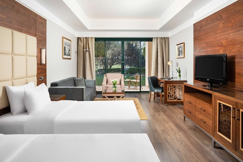 ピラミッドに近い、メディアシティに位置するホテル。カイロの郊外、シクスオブオクトーバーに立地するヒルトン・ピラミッズ・ゴルフリゾートは、スマートビレッジからわずか15分。ホテル周辺には、世界七不思議の1つに数えられるギザのピラミッドがあります。ヒルトン・ピラミッズ・ゴルフリゾートの「フェアウェイ・レストラン」で昼食を召し上がりながら、ゴルフコースの眺めをお楽しみください。あるいは、プールサイドの「アイランド・バー」で、カクテルはいかがでしょう。 当ホテルでは7つのレストランとバーをご用意しています。周辺のカイロの観光名所にもぜひ足をお運びください。 ドリームパーク遊園地は、ホテルからわずか5分の距離です。10名様から600名様まで収容可能な7つの会議室を備えているほか、ビジネスセンターもご利用いただけます。パブリックエリアと会議室には無線インターネット接続を完備しており、コミュニケーションも万全です。 ヒルトン・ピラミッズ・ゴルフリゾートでは、ゲストルームから上のすべてのお部屋にバルコニーを完備。ゴルフコースまたはプールの眺望をお楽しみいただけます。