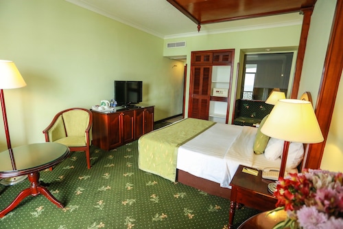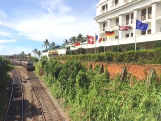 青々としたインド洋とゲートに繋がる橋の下を走る列車と噴水が趣を感じさせるコロニアルホテルで、到着早々VIP気分を味わえます。