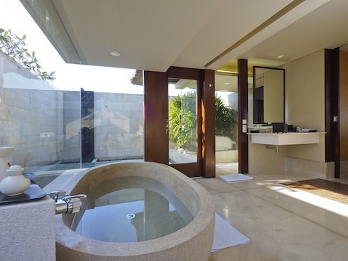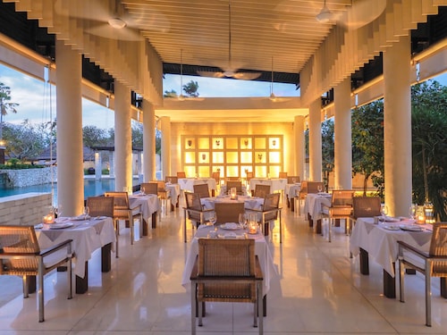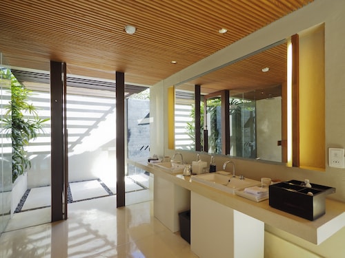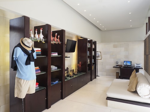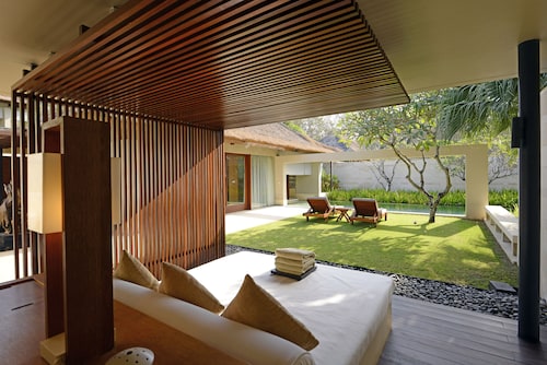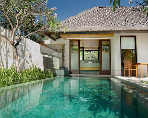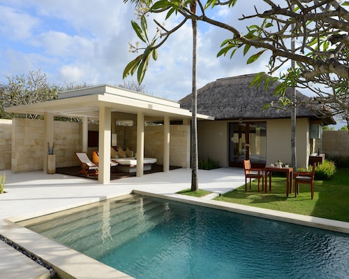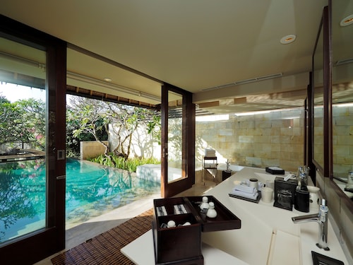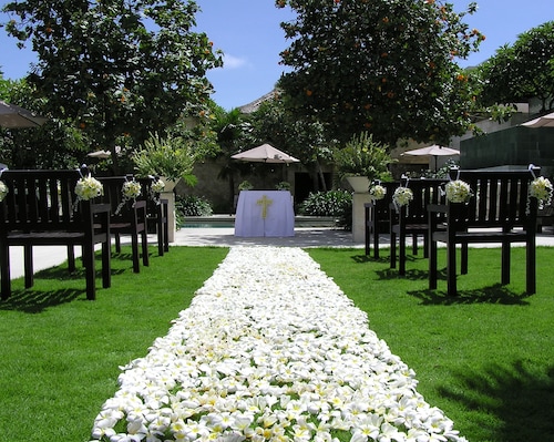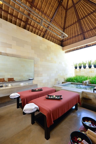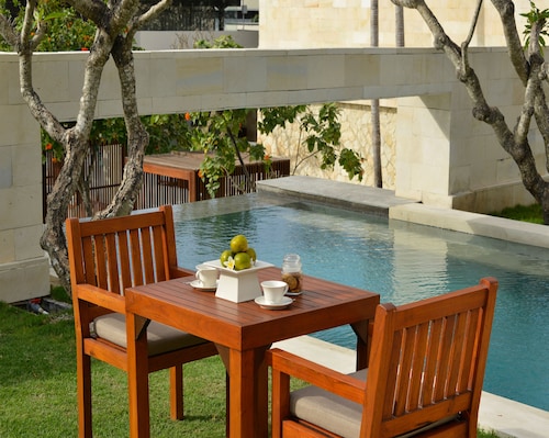 ヌサドゥア地区の小高い丘に建つ26棟のヴィラ。ワイワイ楽しむ大型ホテルとは違い16歳以下は宿泊、レストランへも出入りが出来ないというまさに大人のためのリゾート。注:タパ・レストランは8歳以上よりご利用いただけます全体的に建物は白を基調としてシンプルで爽やかな雰囲気。独立型のヴィラにはプライベートプールやバレと呼ばれる東屋があるので、ヴィラ内で充分のんびりできます。レストランも評判で宿泊者以外も食べにくるほど確かな味。新しく出来たタパ・レストランは早くも話題となっています。サービスもすばらしく、小さいことでもしっかり対応してくれる24時間バトラーがいたり、好きなメニューを好きなだけ頼める朝食などいたれりつくせり感がいいです。海に面していないので意外と知られていませんが、実はヌサドァア地区では一番海が綺麗といわれるゲゲ―ルビーチに宿泊者専用のビーチクラブがあるんですよ。ザ・バレは、まさに大人のカップル向きのホテルです。空港から車で約30分、ホテルがある場所は、ヌサドゥア地区のリゾート内ではありませんが、ショピングモールとなっているバリコレクションまで車で約5分。少し小高い丘にあるので、遠くにビーチが見えます。
