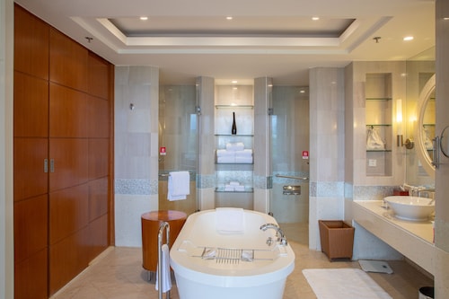 海南島亜龍湾のリゾートエリアに位置するオリエンタルな外観が印象的なラグジュアリーホテル。白砂のビーチとトロピカルガーデンが目の前に広がります。スキューバダイビングやテニスなど、アクティビティプランも充実(有料)手つかずの自然が残る美しいビーチでリラックスするのもお勧めです。一日の終わりには、6つのレストランでピザ、パンアジアン料理、広東料理などを味わいながら語らいのひとときをお過ごし下さい。