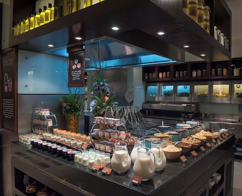 空港からタクシーで10分程度の場所に位置する『ハイアットリージェンシー・ドバイ』は、ドバイの商業や文化において中心的エリアであった、デイラ地区に建設されたドバイで最も古い5星ホテルです。施設内にはスケートリンク、テニスコート、卓球、スカッシュ、サウナなどウェットエリア完備のジム、プール、ゴルフのパターコースなど、運動好きに嬉しいファシリティーが充実。バーベキューもできるので、フィッシュマーケットで新鮮なお魚、お肉、お野菜を買ってバーベキューを楽しむなんていうのも思い出にいかがでしょう(要予約)。ビュッフェスタイルの朝食がおすすめの「ザ・キッチン」、パルメザンチーズのリゾットが美味しいイタリア料理の「フォカッチャ」、ドバイの入り江や旧市街が眺められる回転展望レストラン「アルダワール」、日本食の「京」(みやこ)等のレストランも充実しています!ハイアットリージェンシーの付近には、季節にもよりますが頑張れば歩いて行けるフィッシュマーケット(徒歩10分程度)やゴールドスーク(徒歩30分程度)もあり、古き良きドバイを肌で感じることができるでしょう。