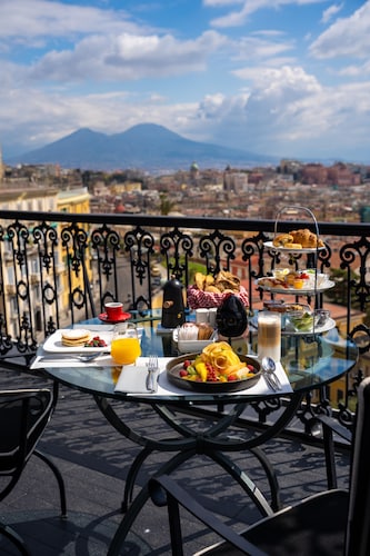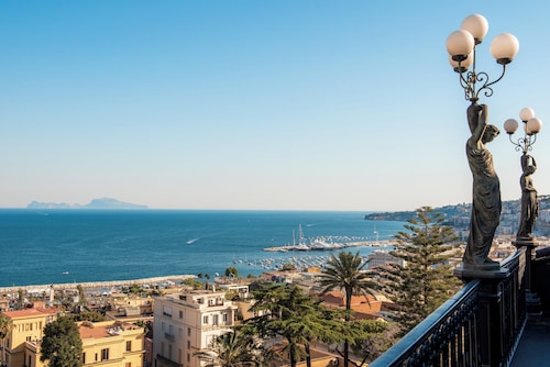 ナポリ湾を見下ろす高台にある、1870年から続く老舗高級ホテルです。歴史の重みを感じさせる建物と、ナポリ湾を見下ろせる立地が一番の売り。ナポリの街並、ヴェスーヴィオ山はもちろん、海の向こうにカプリ島まで見えます。ナポリ中央駅や旧市街からはやや距離があるのでタクシーを使う事になりますが、ナポリの喧騒を離れ、景色を楽しみながら静かにゆっくり過ごしたい方には大変おすすめのホテルです。