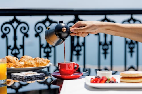 最上階のレストランにはテラスがあり、景色を見ながらの朝食、そして夜景を見ながらの地中海料理とともにロマンチックな夕食も楽しめます。