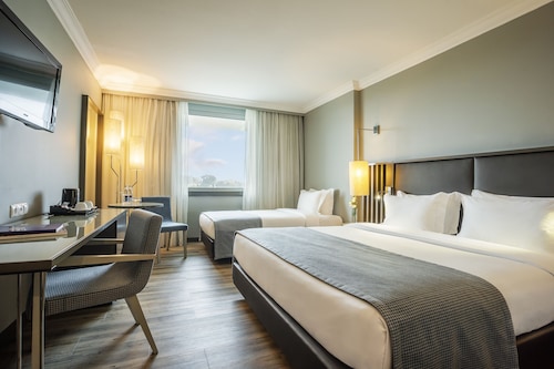 281の客室、レストラン・ジャルディン・ディンヴェルノ、バー・ツイン・ツリーズ、最上階の屋外プール・ラウンジバー、ジム、スカッシュコート、キッズルーム、ビジネスセンター、駐車場等を完備。