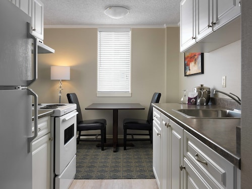 スイートには広いリビングダイニングルームに加えて、コンロ付きのフルキッチンまたはキチネット(簡易型キッチン)が完備されています。