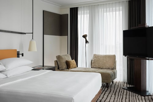 ベルリンの中心部、ポツダマープラッツ駅至近の5つ星ホテル。2003年にオープンしました。にもかかわらず2013年にリニューアルを果たしているので、とてもモダンなホテルです。 ブランデンブルク門や、国会議事堂などは徒歩圏内。別の方向に目を向けるとフィルハーモニーも近くにあるので、現地でのコンサートを楽しみたい方にはぴったりです。また都市近郊電車S-Bahnや地下鉄、バスもすぐに乗ることができるので、ベルリン市内のどこに行くにも便利です。 ベルリン市民憩いの公園、ティーアガルテンも近くに広がっているので、散策するにももってこいのホテル。 部屋数は379室。室内での無線LAN利用には別料金が発生するので、注意してください。 ホテル内には、アメリカンレストランとバーが備えられています。その他設備として、サウナ、室内プールとフィットネスルームが。汗を流してすっきりして観光もしくは次の行程に移ることができます。入り口は少し判りづらいところにありますが、ソニーセンター方面に向かうと看板が見えてきます。