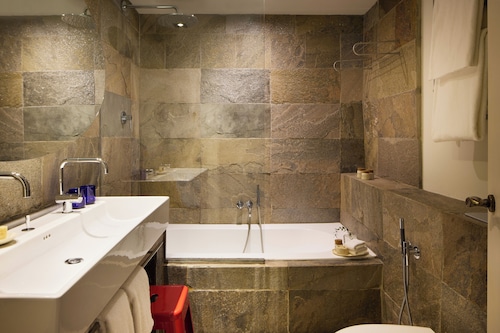 ゆっくりくつろげリラックスできます。自然石のタイルを使ったバスルーム。