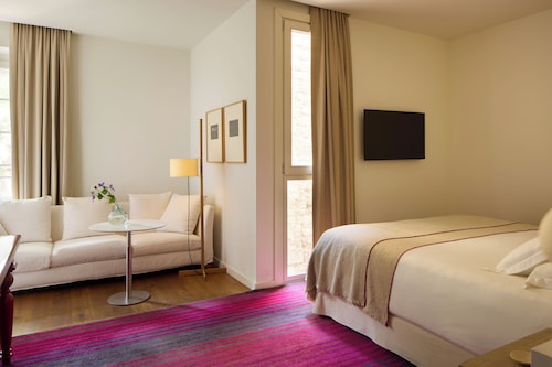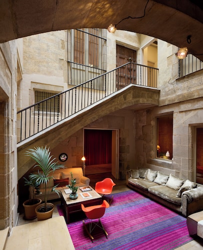 世界的権威を誇るホテルとレストランの会員組織、Relais & Chateauxのメンバーホテルです。洗練されたサービス、クラシックとモダンの融合、街の中心地にありながらリラックスできる空間。隠れ家的ホテルです。空港からタクシーでホテルまで20分。空港バスが止まるカタルーニャ広場から徒歩10分。ゴシック地区に位置し、カテドラルまで徒歩2分。観光には便利な場所ですが、大通りに面していないのでタクシーは入ってくれないこともある地区に位置しています。客室はモダンなインテリア。古い石造りの建物は光が大変貴重、その為内装は明るく無難な色使いになっています。アンティーク家具などは置いてなく、その代わりにビルトインの机やテーブルあり。スタンダードルームは2人分のスーツケースを広げても十分広く快適に滞在できます。無料のWi-Fiあり。部屋のタイプがスタンダード以外だと、バスルームにはバスタブもあり、手足を伸ばせゆっくりくつろげリラックスできます。自然石のタイルを使ったバスルーム。シャワーヘッドは取り外し可能なタイプで使い勝手が良いです。スタッフもフレンドリーで気が利きます。客室数22の小さなホテルのためホテル内隅々に目が