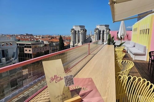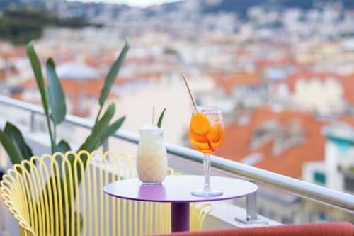 世界的チェーンの4つ星ホテル、メルキュール ニース サントル ノートルダムホテルはニース駅から徒歩5分、海沿いのプロムナード・デ・ザングレからは徒歩10分、そしてトラム1が通るジャン・メドサン通りから入ってすぐの所にあります。駅や空港、旧市街や海沿いまでの移動だけではなく、たくさんのショップやカフェ、レストランなども周りにあるので、お食事やショッピングにも便利な立地です。ホテル名にも入っているようにノートルダム寺院のほぼ向かい側にあり、屋上テラスからは寺院の塔をすぐ目の前に見ることが出来ます。このホテルのお勧めポイントは、観光もショッピングも楽しめるロケーションにありながら、プライベートガーデンと絶景も備えていること! バケーション気分をたっぷり味わえるホテルです。屋上のテラスからはなんと360度の景色が楽しめるほか、ドリンクやお食事を楽しめるSky Lounge bar、そしてプールとジャグジー、2000平方メートルのプライベートガーデンとフィットネスセンターも完備。街の真ん中にありながらリラックスしてリゾート気分を満喫できます。お部屋はシンプルクラシックな雰囲気と、ポップでアーティスティックな雰囲気の