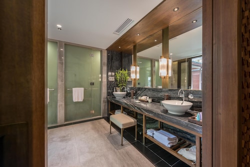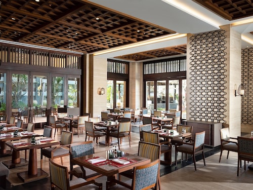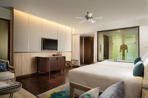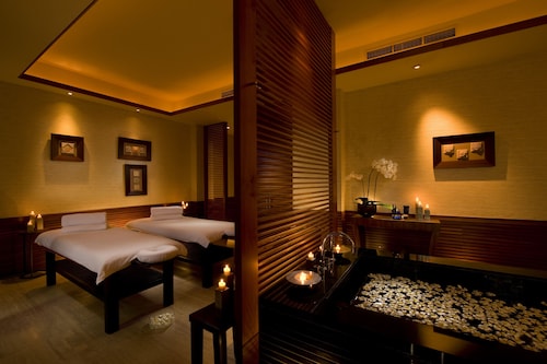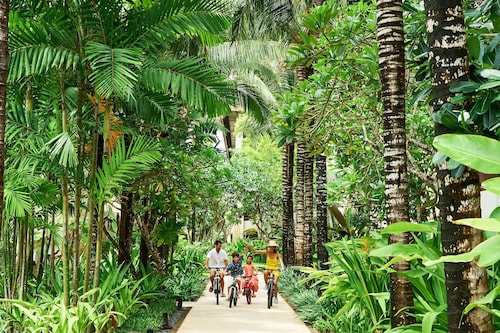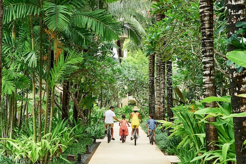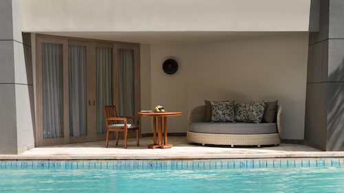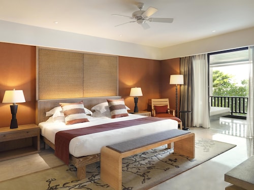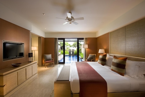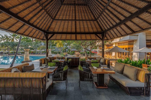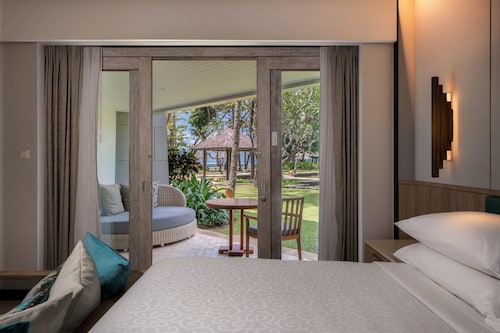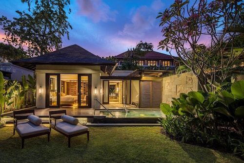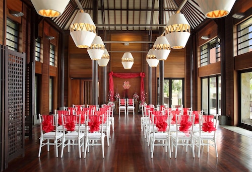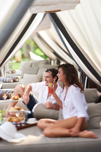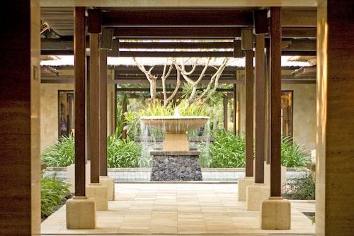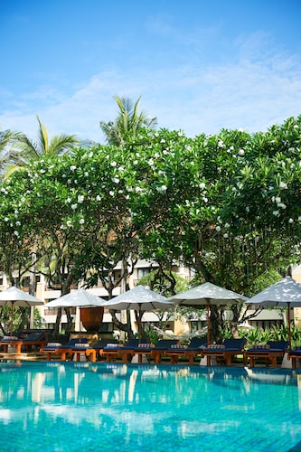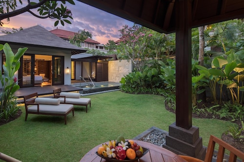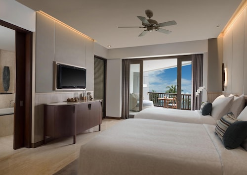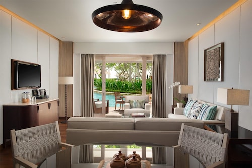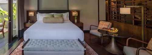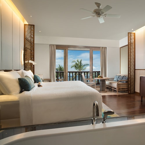 ヒルトングループの最高峰ブランドであるコンラッド。スタイリッシュなセンスが各所で光ります。まずロビーに入ると海からの風が吹き抜け美しい海を見渡すことが出来ます。メインプールやラグーンプールも最大級、お子様と一緒に存分遊ぶことが出来ます。大人のカップルにお勧めは、海辺に面して建っている東屋。好きな音楽を聴いたり、本を読んだり、とにかくダラダラ過ごすには最高の場所です。予約制なので早めにお申し込みを。個性的なレストランも4箇所あり人気のスパ、ウォータースポーツも充実しているので、大人も子供もシニアの方も楽しめるのが特徴です。敷地内にあるチャペルは人気のチャペルで宿泊もコンラッドでという方も多いのも納得です。海上高速道路を使えば、空港から約20分。ブノア地区にあり目の前が海の抜群のロケーション。ヌサドァウ・リゾート内まで車で約5分。周りにはコンビニ、地元商店、レストランがありますので便利です。大型ホテルが多いのでタクシーも簡単につかまります。白を基調とし清潔感あふれ、スタイリッシュなお部屋です。随所にバリっぽさも取り入れていてリゾートを感じさせてくれます。デラックスルームはガーデンビュー。デラックス・ラグーンは