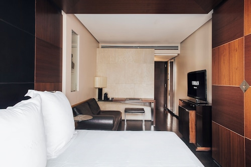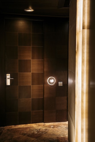このこだわりが、ホテル・アーバンの隅々に現れています。ブラック・ジンバブエ・ストーンや、教会建築のステンドグラスにも使われるライト・ストーンを多用した内装、ゴールドとブラウンをベースにした客室のデコレーション。