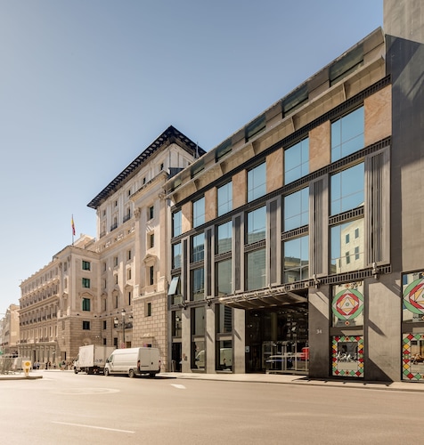 右手に代議院、左手にメキシコ大使館を見ながら、プラド美術館とソル広場を結ぶコルテス広場を上がって約5分。そんな絶好の立地に建つのが、スペイン語でオテル・ウルバンとも呼ばれる5つ星のホテル・アーバンです。ここからは、グランビア通りへも、サンタアナ広場へも歩いて10分です。