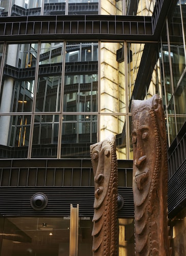 そんなレセプションからはいるガラス張りのホールには、ザノッタのソファセットが、パプアニューギニアからのトーテムポールとともに並べられています。