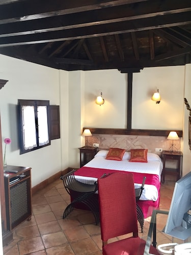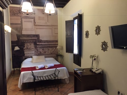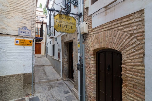 16世紀のお屋敷を改装した、アルバイシン地区のホテルです。全18室で、どれもオリジナルの建材をうまく利用しながら、新しく加えた建材に関しても、グラナダの伝統的なファハラウサ地区のタイルを浴室に使うなど、土地の建築様式や建材の伝統を尊重していて、それでいて、3つ星ホテルとしての快適を犠牲にしていない、バランスの取れたホテルです。かつては、スペイン北部の裕福な一家が、グラナダで夏を過ごすために持っていた家だったのですが、売りに出された後は集合住宅になってしまい、それを今のオーナーが買い取って、2年半の改装を行なった上で2001年にホテルとしてオープンしました。お部屋の雰囲気は、お部屋ごとに異なりますが、どれも木の天井の伝統的な雰囲気を持つお部屋で、中にはアルハンブラが見えるお部屋もあります。表通りから少し奥に入っているだけに、通りの喧騒も全く気になりません。ヌエバ広場(Plaza Nueva)から、ダーロ通り(Carrera del Darro)に入り、すぐ左の脇道に入ったところにあり、広場から徒歩2分ほどの距離ですが、タクシーを使っても扉までは行けません。ダーロ通りでタクシーを降りて30メートルほど歩くこと