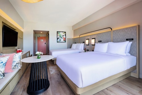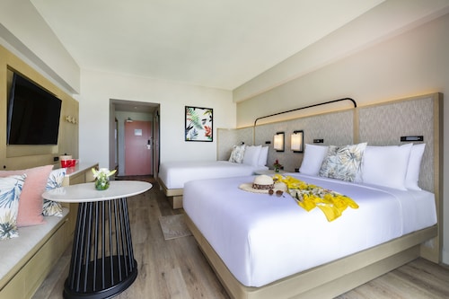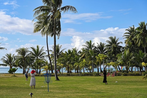 立地のよさではダントツの1位!ガラパンは『街』とは言ってもとっても小さな街なので、ホテルロビーをを出るとすぐにレストランや小さなお店・コンビニなどが並んでいます。免税店までは徒歩5分ほどなので免税店の無料シャトルバスもありますが、ほとんどの人はぶらぶら街を見ながら歩いていく人がほとんどです。ビーチには雰囲気の良い小さなバーがあり、綺麗な夕焼けを眺めつつカクテルなどはいかがですか?リゾート気分を味わえること間違いなし! ハッピーアワーもあります。各部屋とも有線または無線LANが無料で利用可能(無線LANの場合は繋がりにくい部屋もあります。) 全室バルコニー付き、客室の広さはスタンダードタイプで32㎡。 ベッドはセミダブルベッドブラウンを基調とした落ち着いた室内でセーフティボックスあり。オススメの客室 〈エグゼクティブルーム〉サイパン唯一のオーシャンビューラウンジ『エグゼクティブラウンジ』が利用できます。ラウンジではコンチネンタルブレックファストの他イブニングカクテルアワーまで楽しめます。オススメはカクテルを片手に眺めるサンセット。リゾート気分満点です。バスルームには独立したシャワーブースもあり、バスタブから