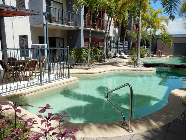 こちらのコンドミニアムの1番のオススメは、そのロケーションと値段では無いでしょうか。ケアンズセントラルショッピングセンターの真横、エスプラネードまで徒歩5分、という立地条件の良さと、それにもかかわらず、バジェットタイプのホテルと同じ位の料金で泊まれるコンドミニアム、というのが嬉しいです!ただ、敷地の裏側に線路があり、列車が通るときには、線路側のお部屋では音が気になる事もあります。また、中庭が駐車場になっていてガーデンビューのお部屋だとベランダが丸見えになっていたり、1階(グランドフロア)の隣の建物と接しているお部屋だと、お日様が入りにくく、一日中暗くなる場合もあります。なお、建物が3階建てなのでエレベーターがありません。重い荷物を持って3階(セカンドフロア)まで上がるのは大変なので、1階(グランドフロア)か2階(ファーストフロア)にされる方も多いようですよ。予約の際に希望を伝えておけば、できるだけリクエストに答えてくれるので、どんどん希望を出しましょう!笑お部屋の家具類もモダンで、食器類や調理器具も揃っています。ただ、調味料などはありませんので、料理をする場合は購入する必要があります。インターネットアクセ