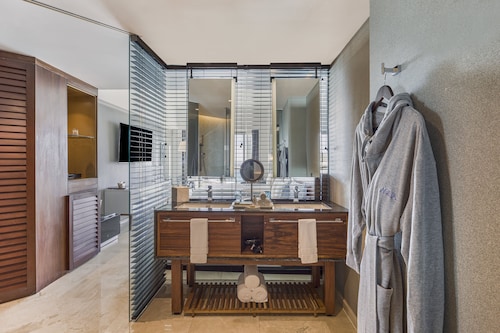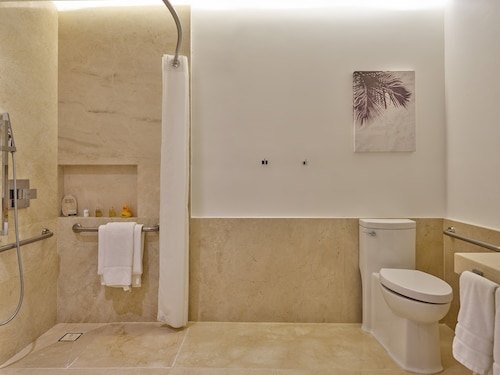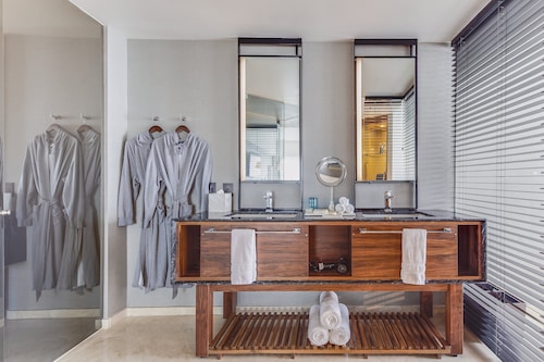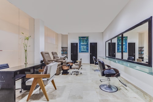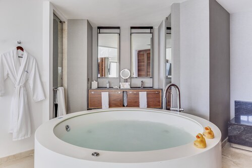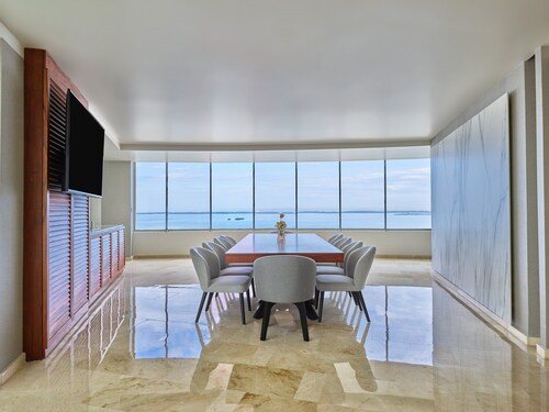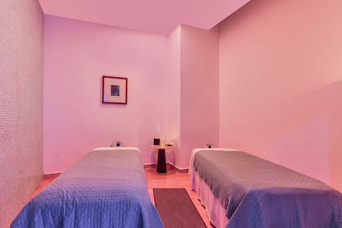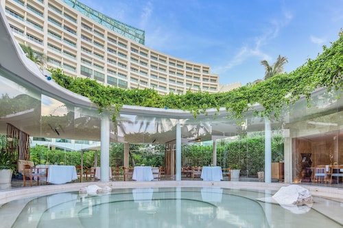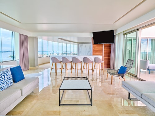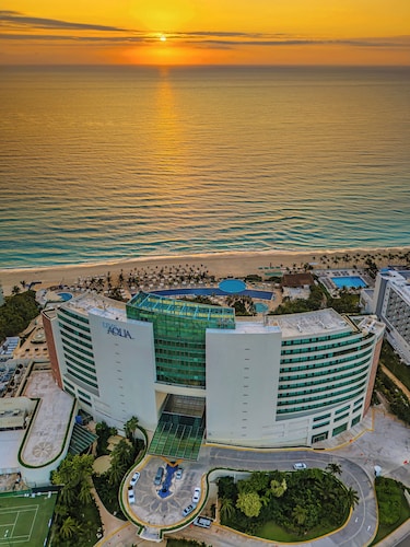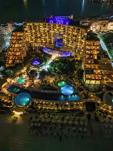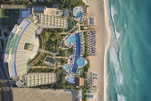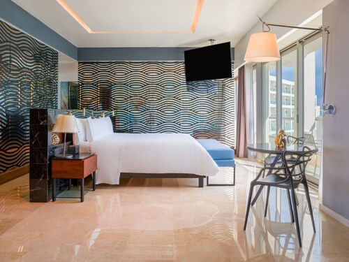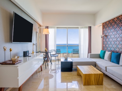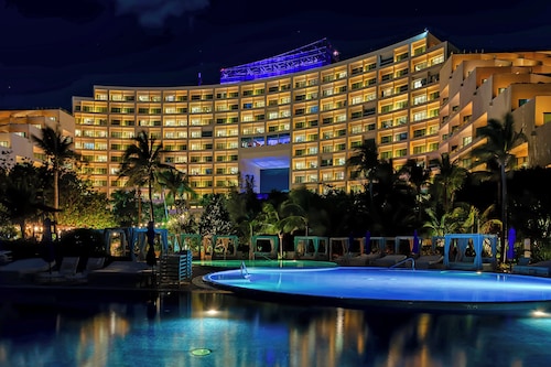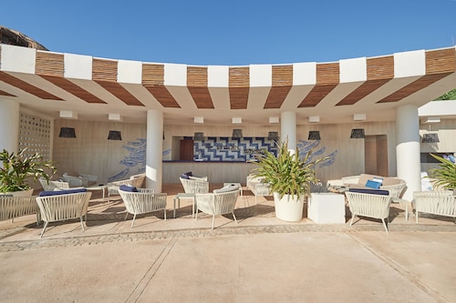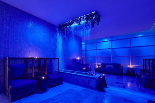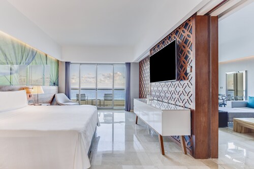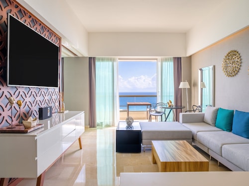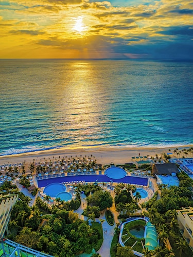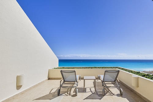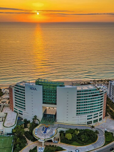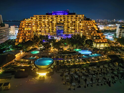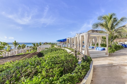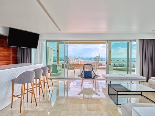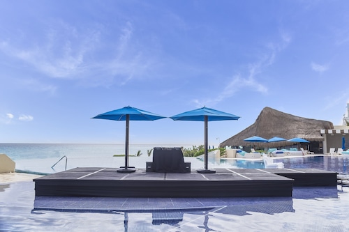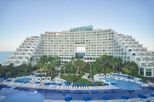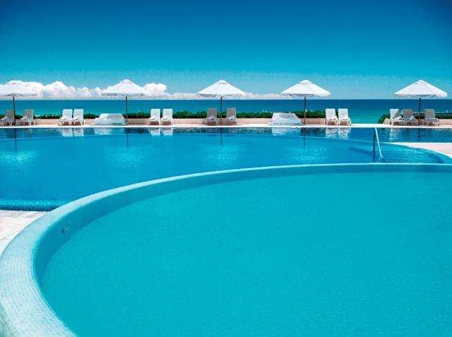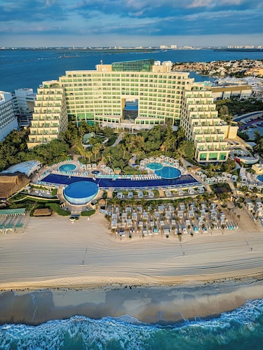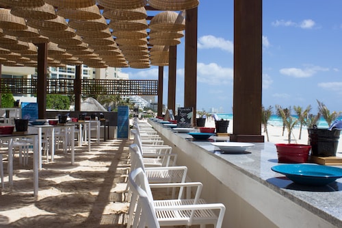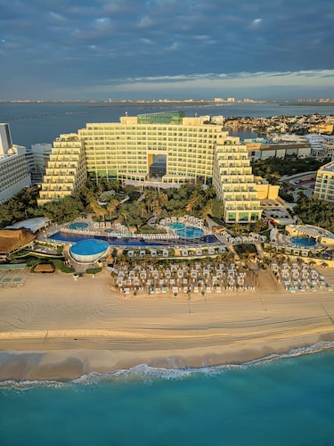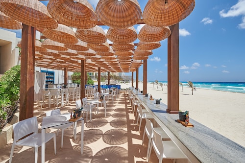 カンクンのホテルゾーンで最大級のショッピングセンターのラ・イスラ・ショッピングビレッジへ徒歩で行ける、好立地のオールインクルーシブホテル。ガラス張りのエントランスでスタイリッシュ感満載でありながら、ホテル内に漂うアロマの香りがラグジュアリーな雰囲気にさせてくれます。18歳以上の方が宿泊できる大人のためのリゾートで、一流のサービスを味わうことができます。館内のところどころにはかつて栄えたマヤ文明のモチーフがあり、この地ならではのこだわりが見られます。ホテルスタッフは、胸に手を当て「インラケーシ」と、少し変わった挨拶をしてくれるのですが、これはマヤ語でI’m yours. You are mine.という意味。挨拶やサービス全てに温かさを感じられます。館内の行き届いた清掃も、気持ちよく過ごさせてくれる大きな理由。客室は全室オーシャンビューで、白を基調としたシンプルな内装が、窓から見えるカリブ海の色を際立たせています。人気のサービスとして、毎晩ターンダウンサービスがあります。ゆっくり眠るための準備をするサービスで、ベッドを整えてくれるほか、5つのアロマから好きなものを1つ選び焚いてくれるというもの。必要がなけれ