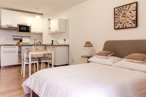 ニース シティ センターに位置するこのアパートメントは、キャッスル ヒルおよびプロムナード デ ザングレから徒歩 5 分圏内です。マセナ広場およびニースの港も 10 分圏内です。カテドラル - ヴィエイユ ヴィル トラム駅まで徒歩わずか 3 分、オペラ ヴィエイユ ヴィル トラム駅まで徒歩 7 分です。 この禁煙のアパートメントには、ランドリー設備があります。 アパートメントでは、冷蔵庫とコンロ、電子レンジ、食器洗い機が備わったキッチンをご利用いただけます。便利な洗濯機 / 乾燥機、ダイニング スペースのほか、バルコニー、スマートテレビもご利用いただけます。客室清掃が行われる日が限定されています。