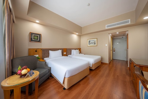 予算を考慮しなければ是非おすすめしたいホテルです。特に夕食のビュッフェは日本食から西洋、ベトナミーズまで揃っていて、シーフード料理は生カキ、伊勢海老などが食べ放題です。他にもスパ、プール、フィットネスジムなどもありますので、連泊してゆっくり過ごすのがこのホテルの楽しみ方です。ドンコイ通りの隣りを並行して走るグエンフエ通りは目抜き通りの一つ。ホテルはこの通りのサイゴン川沿いに位置しているのですが、観光巡るにはいささか中途半端な立地です。レストランや雑貨ショップなどは通りを渡ったドンコイ通りに行けばたくさん見つけることができます。客室はどの部屋タイプも広いのが売り。白と茶を貴重としたシックな内装で、落ち着いたムードを漂わせています。間接照明で部屋を明るくするのも雰囲気が出て◎。バスルームはアメニティが充実しており、連泊の場合は毎日新しいのと交換してくれます。浴槽、シャワーとも快適で、4つ星ホテルならではの高級感ある造りとなっています。ホテル内施設は、グランドフロアとなるロビーが広々としていて、レセプション、ビュッフェの他小さな雑貨ショップとカフェラウンジがあります。スタッフは愛想がよく、フレンドリーな印象です