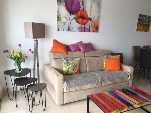 ビーチに位置する、ヴィルヌーヴ ルベ ビーチのこのアパートメントは、マリーナ ベ デ ザンジュおよびヒッポドローム ドゥ ラ コート·ダジュールから 2 km 圏内です。アクアスプラッシュおよびアンティーブ ランドも 5 km 圏内です。ヴィルヌーヴ ルベ駅まで徒歩わずか 14 分です。 この禁煙のアパートメントには、ランドリー設備があります。 アパートメントでは、冷蔵庫とオーブン、コンロ、電子レンジが備わったキッチンをご利用いただけます。便利な2 室のバスルーム、洗濯機のほか、WiFi (無料)、バルコニーもご利用いただけます。