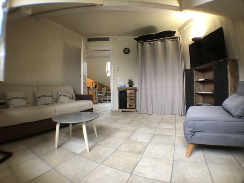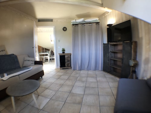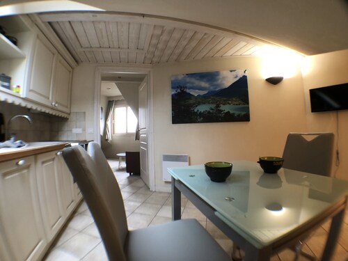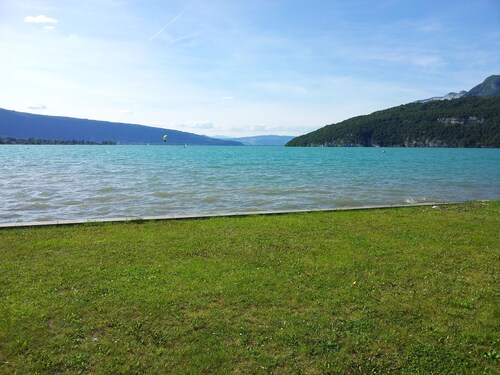 デュアンに位置する、ビーチフロントのこのアパートメントは市内中心部にあり、バージュ地方自然公園およびアヌシー湖から 2 km 圏内です。サン・ジョリオズ・ビーチおよびレ・ロゼリエールの遊歩道も 5 km 圏内です。 スキー装着のままアクセス可能な出入り口および庭園がある禁煙のアパートメントです。 アパートメントでは、冷蔵庫とコンロ、電子レンジ、食器洗い機が備わったキッチンをご利用いただけます。便利なソファー ベッド、ダイニング スペースのほか、コーヒー / ティー メーカー、テレビもご利用いただけます。