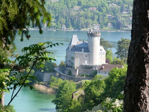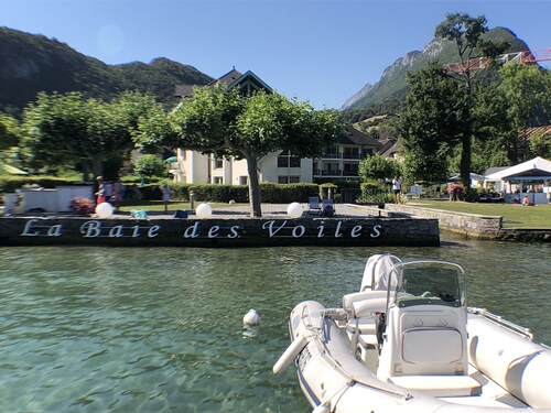 アヌシー湖、プライベートビーチ、ポンツーンのパノラマの景色を望む典型的な宿泊施設Atypical accommodation with panoramic views of Lake Annecy, private beach and pontoon
