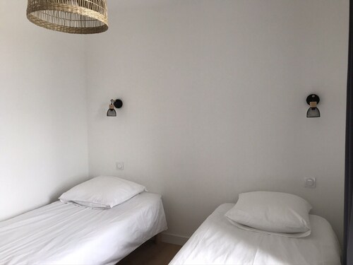 サン=ポル=ド=レオン中心部に位置するこのゴルフを楽しめるバケーションホームは、サン=ポル=ド=レオン教会およびブルターニュ ビーチズから 2 km 圏内です。プラージュ・サント・アンヌおよびグレーヴ・デュ・マンも 2 km 圏内です。 この禁煙のバケーションホームには、ランドリー設備があります。 バケーションホームでは、冷蔵庫とオーブン、コンロ、電子レンジが備わったキッチンをご利用いただけます。便利な2 室のバスルーム、洗濯機のほか、WiFi (無料)、テレビもご利用いただけます。