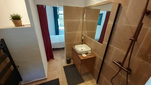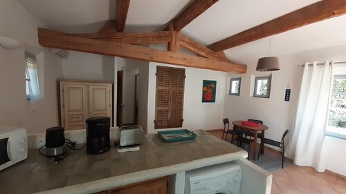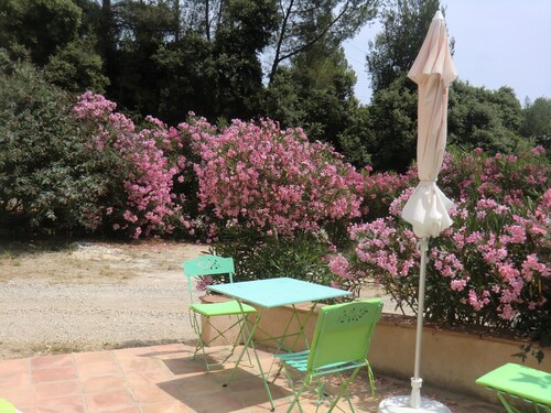 ラ カディエール ダジュールにあるこのバケーションホームは、ドルチェ フレガート プロヴァンス ゴルフ コース、ドメーヌ ブナン、サント=ボーム地域自然公園から 5 km 圏内です。ヴィラ デ フロおよびセンターオリエンタリスビューテも 5 km 圏内です。 ランドリー設備、庭園、およびバーベキューグリルがある禁煙のバケーションホームです。 バケーションホームでは、洗濯機、電子レンジに加えて、コーヒー / ティー メーカー、テレビもご利用いただけます。シャワー、アイロン / アイロン台などの設備とサービスもあります。客室清掃はリクエストにより行われます。