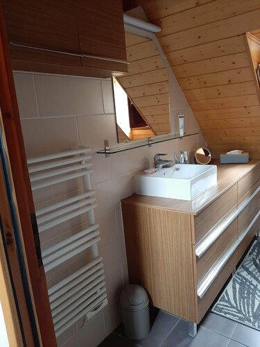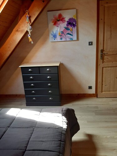 山中にあるこのバケーションホームは、サン ローラン教会、チャーチ オブ サン テグジュペール、イーグルス オブ オールから 3 km 圏内です。ペヌ タイヤード礼拝堂およびカデアック ウォッチタワーも 5 km 圏内です。 禁煙のこのバケーションホームでは、駐車場、インターネット アクセス、喫煙スペースをご利用いただけます。 バケーションホームには、ベッドルーム 2 室、WiFi (無料)、パティオが備わっています。キッチンには、冷蔵庫、オーブン、コンロ、電子レンジが備わっています。