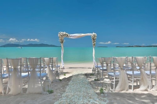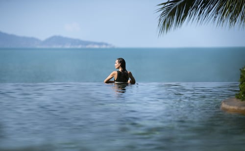 ホテル前に広がるビーチや、リゾート中央のインフィニティ・プールからは、目の前にパンガン島を望む絶景を楽しむ事ができます。