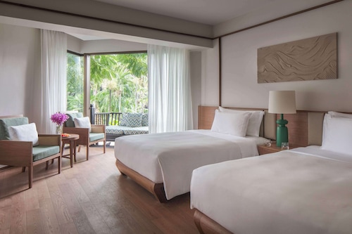 客室は、最もリーズナブルなデラックスタイプ(36㎡)から、プライベートプールを備えた、アナンタラ ビーチフロント プール スイート(80㎡)まで、全8タイプ。どのお部屋も、タイのテイストを活かしながらもスタイリッシュでモダンなデザインです。中でもオススメは、ジュニア ガーデンビュー スイート(44㎡)。建物の1階に位置し、トロピカルガーデンとつながったテラスが心地よく、ガーデンを眺めながらバスタブにひたれるバスルームも快適です。